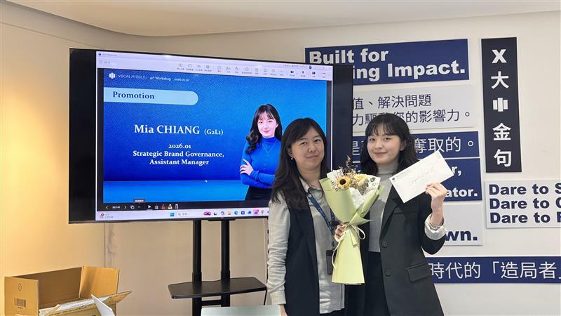 這段時間,你所展現的不只是投入與完成任務,而是開始為公司如何被理解、被看見、被信任,做出判斷、取捨與創造對話。你對品牌與論述的敏感度、對品質與一致性的堅持,已不只是個人能力,而逐漸成為夥伴們可以依循的基準。晉升,意味著責任的重量,也意味著更長線的視角。我相信妳已準備好承擔這份信任,並在更大的框架中,持續設計與守護公司的形象與方向。