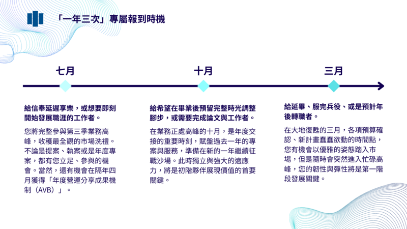 *註:「初階公關顧問」招募針對:應屆畢業生、三年以下非直接相關經驗工作者。