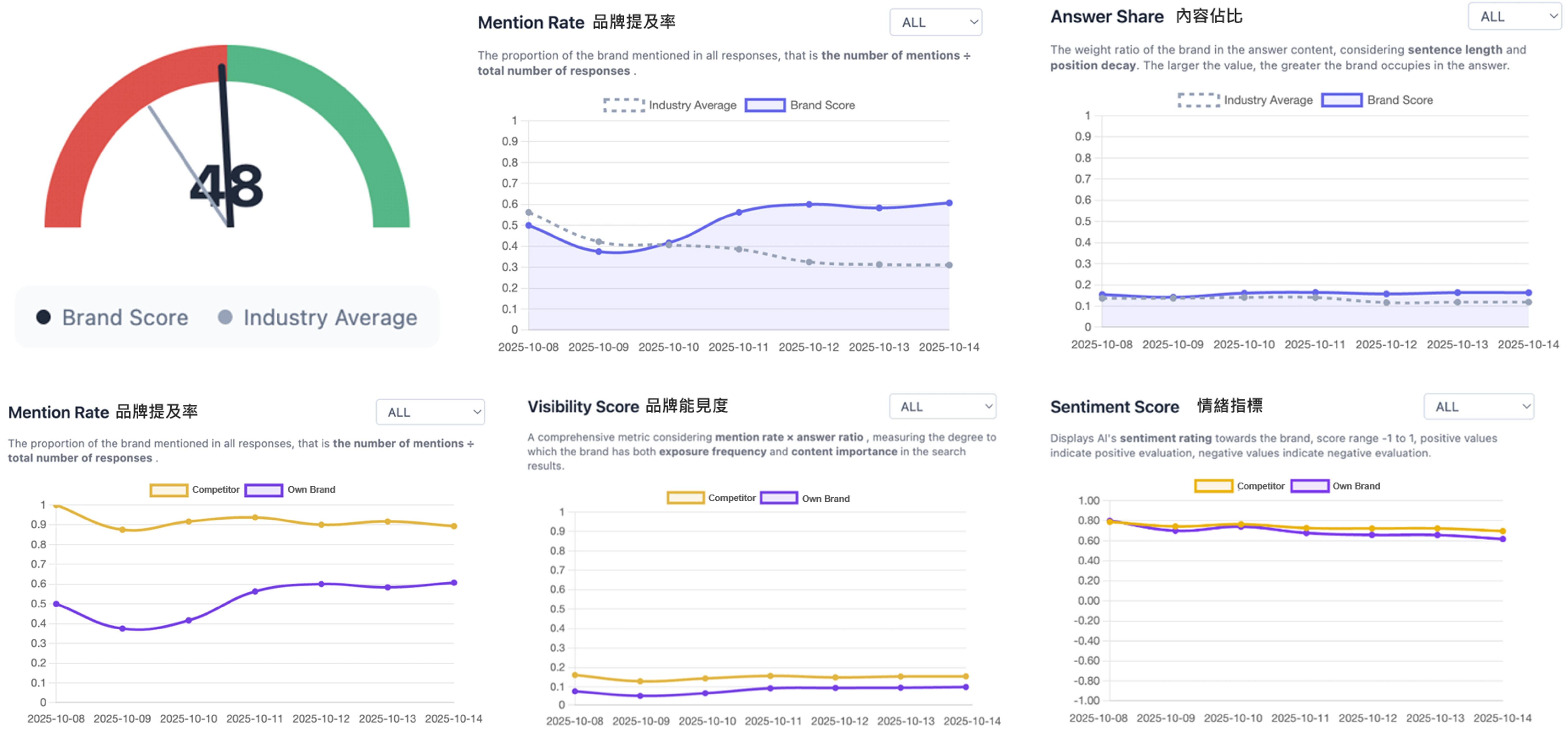 布爾喬亞公關顧問創辦人鄧耀中表示:「VM GEO 採用布爾喬亞自研的多維監測系統,以提及率(Mention Rate)、內容占比(Answer Share)與綜合評分(Overall Score)等指標為核心,持續追蹤品牌在 AI 回答中的可見度與信任強度。」