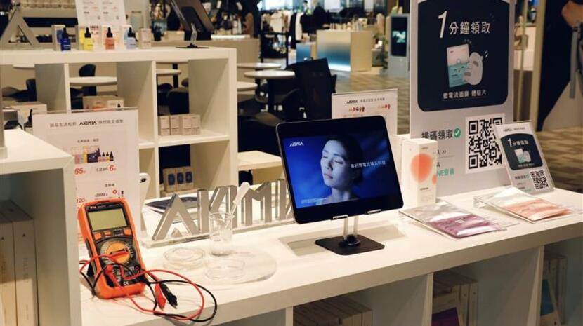以「電流實測」為設計互動環節,現場設置電壓測試儀讓消費者可親眼看到原「乾濕分離」的面膜在精華液混和後反應出的微電流作用,強化不同於別牌面膜的「有感、有證據」的科技印象並理解「微電流真的有效」,亦能親身感受「沒有電流麻感」的預設立場心理牴觸。